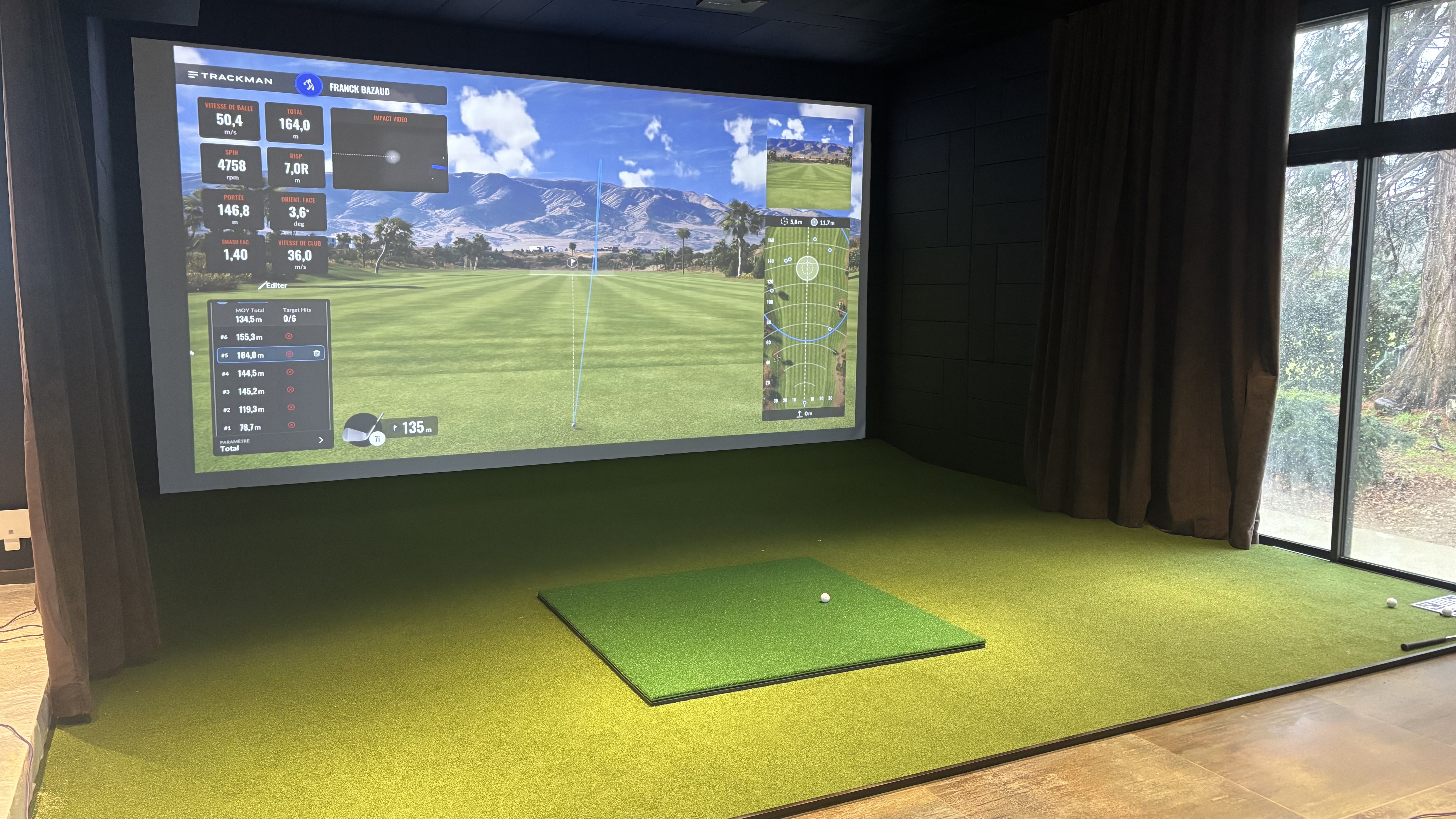 Pour plus de confort et de tranquillité, nous nous chargeons de tout ce dont vous avez besoin pour amener le parcours de golf à votre domicile. Enceinte de simulateur, radar, écran, tapis de practice et accessoires. La conception peut être adaptée à votre espace, votre budget ou vos envies. Pratiquez votre sport préféré toute l'année !