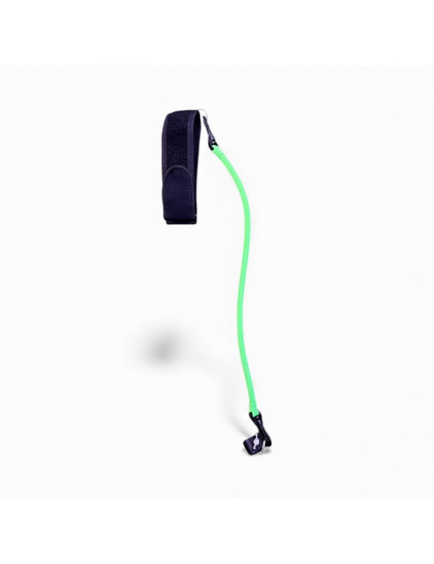 Il se compose d’une attache au bras équipée d’un point de fixation, et d’un élastique de résistance doté d’un clip d’un côté et d’un mousqueton de l’autre.