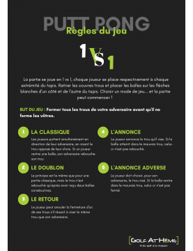 Un jeu de putting fun et ludique entre amis ou en famille ! Affrontez votre adversaire et prouvez qui est le roi du putting !